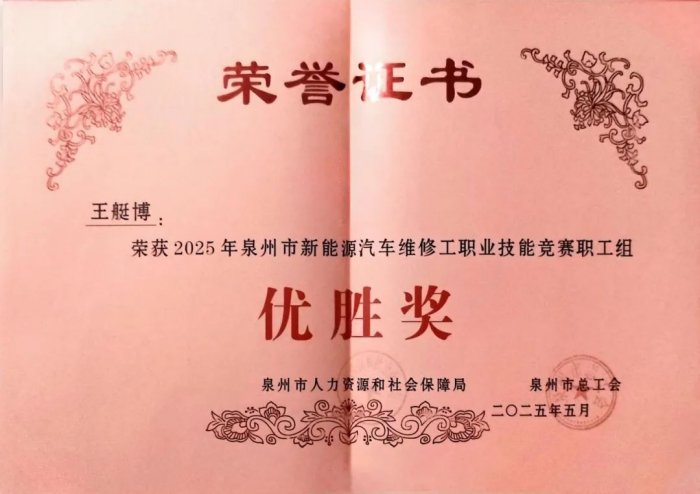 王艇博老師深耕汽車維修領(lǐng)域,積累了豐富的實(shí)戰(zhàn)經(jīng)驗(yàn),他對細(xì)節(jié)極致追求,技藝精湛。在教學(xué)中,注重理論與實(shí)踐相結(jié)合,以生動的案例和實(shí)操訓(xùn)練激發(fā)學(xué)生的學(xué)習(xí)熱情,本人先后榮獲吉林省職業(yè)技能大賽二等獎、惠安職業(yè)技能大賽第一名、泉州市新能源汽車維修工大賽第四名,被授予惠安工匠、金牌惠安師的榮譽(yù)稱號。
