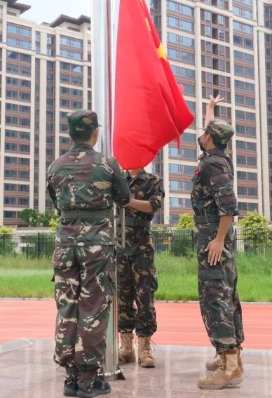 開營儀式在莊嚴(yán)的國歌中正式拉開帷幕。國旗護(hù)衛(wèi)隊(duì)邁著鏗鏘有力的步伐護(hù)送國旗入場。在雄壯的國歌聲中,鮮艷的五星紅旗冉冉升起,全體師生肅立行禮,目光熾熱,展現(xiàn)了云揚(yáng)學(xué)子昂揚(yáng)向上的精神風(fēng)貌和深厚的愛國情懷。