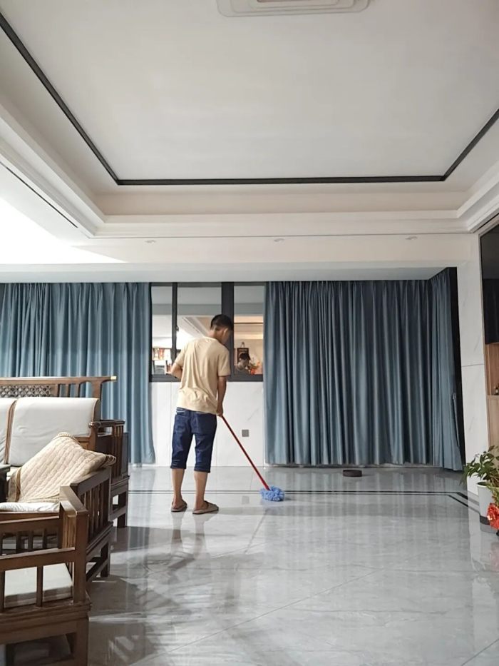 我握著拖把,像推著一支大毛筆,在地板上畫“干凈”——水痕拖到哪,媽媽的笑就跟到哪。