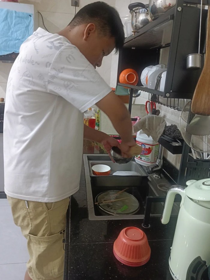 我手里這堆油碗,就是今天的“作業(yè)”——刷完它們,才發(fā)現(xiàn)媽媽每天做的“作業(yè)”比我難多了!
