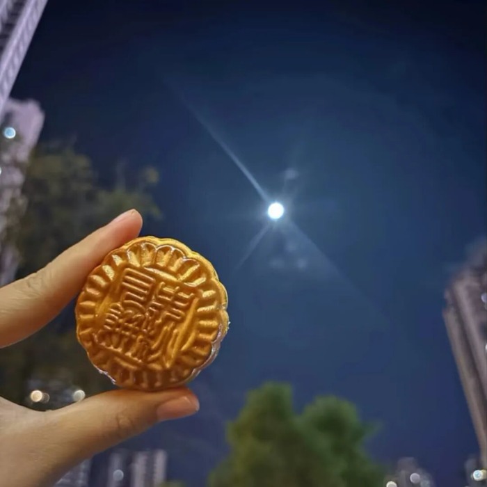 “月餅?zāi)槨辟N著“月亮臉”——地上的小團(tuán)圓和天上的大團(tuán)圓,一起合了張影,中秋才算圓滿!